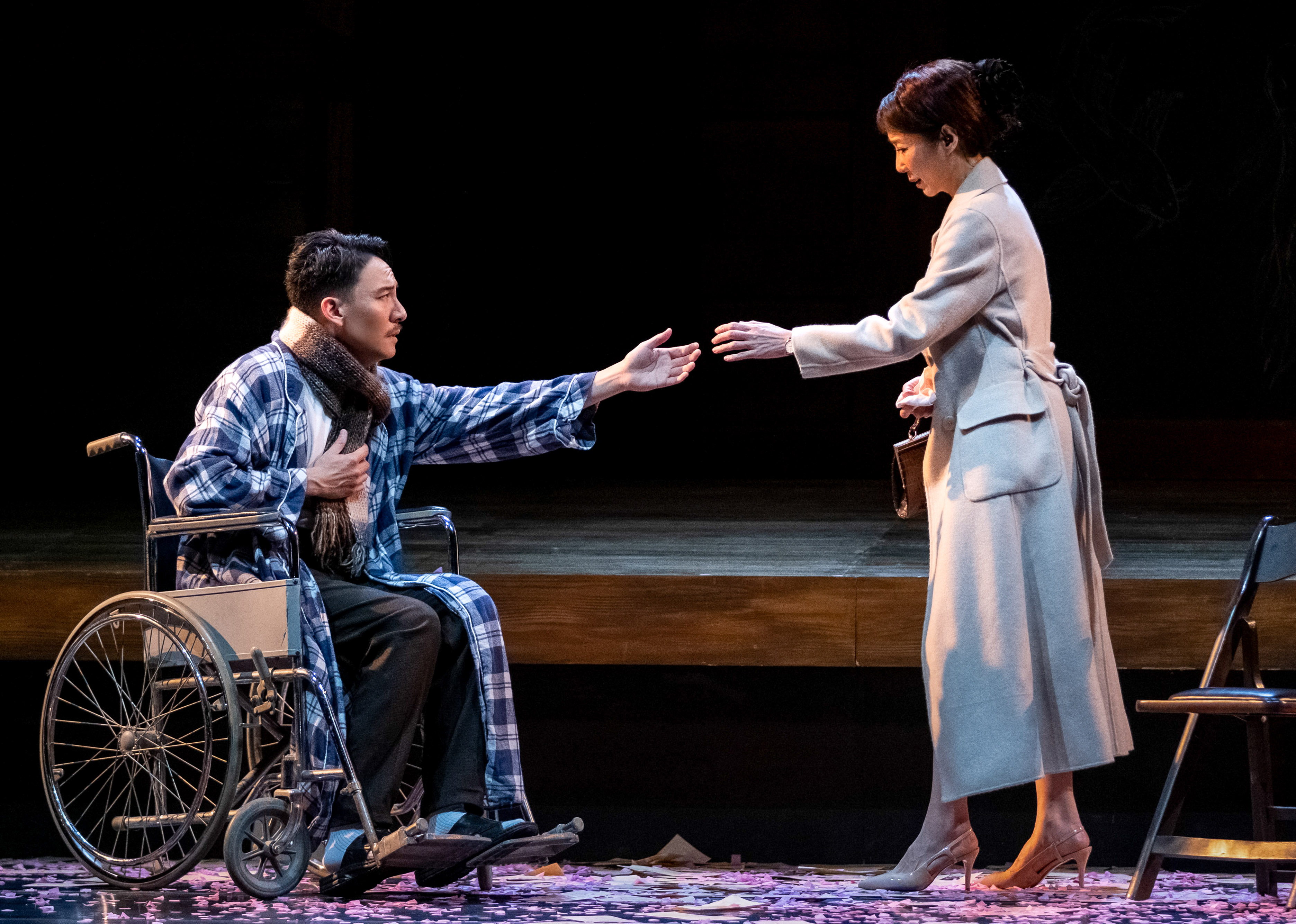 我們知道江在1986年前後生病住院,然後因為大陸開始開放,得知雲原來也在臺北的消息。兩人在醫院病房,四十年後的相聚成為劇場的經典場景,但也留下許多留白,等待《江/雲.之/間》來填補。