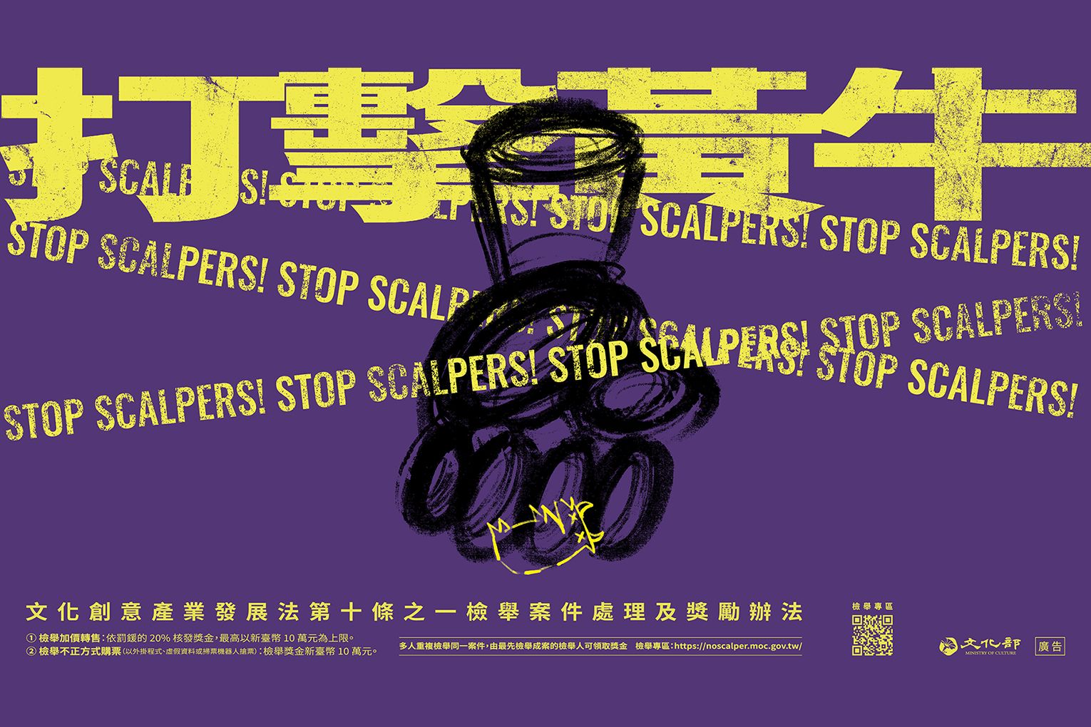 邀請大家一起努力,共同保護及支持喜愛的表演藝術團隊與表演者,建構友善的購票環境,如欲了解相關法規詳情或檢舉案件處理與獎勵辦法,請至文化部檢舉專區https://noscalper.moc.gov.tw/