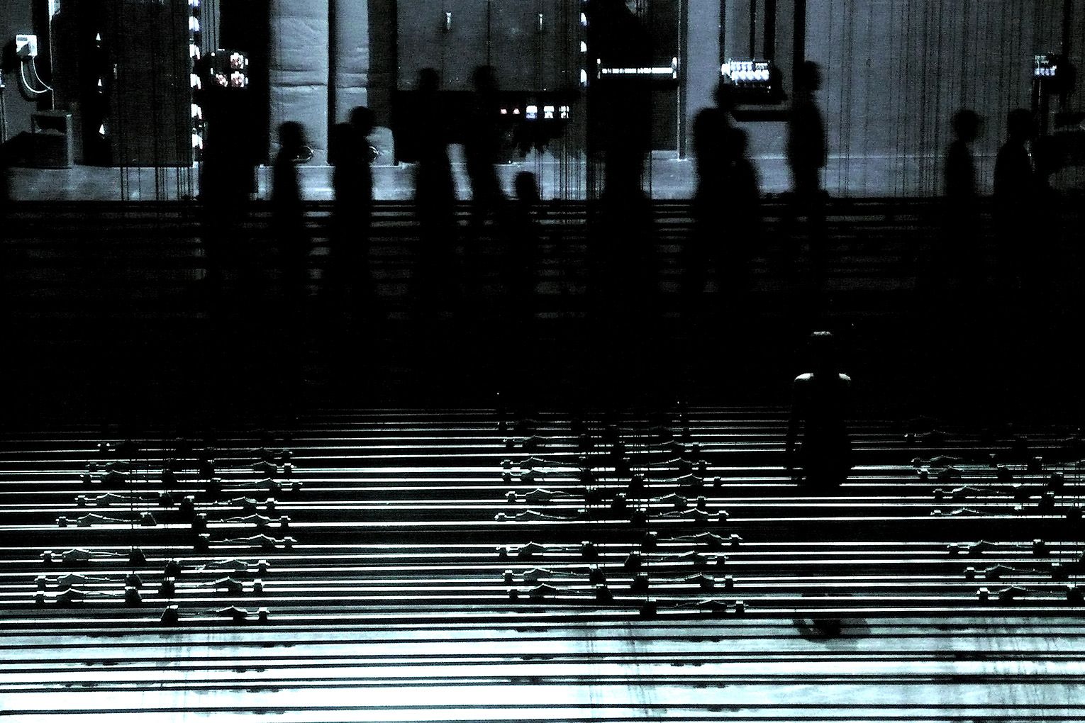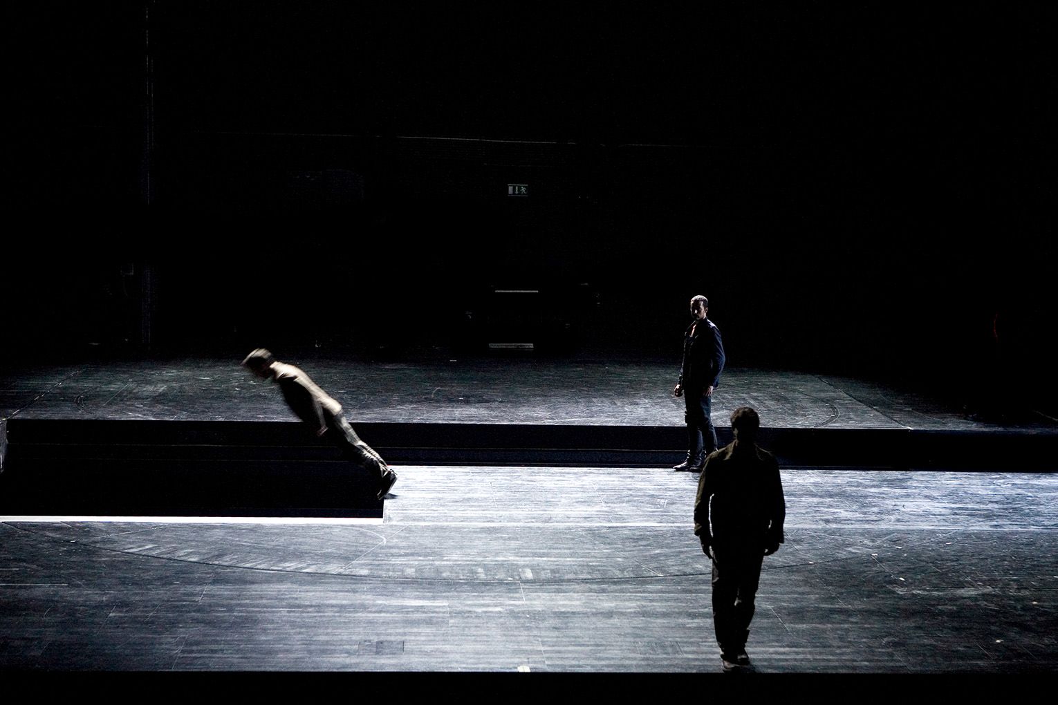 帕派約安努透過26位表演者來探索舞台上的空間,用他們的身體來測量與定義這個舞台,一個可以被重複定義,充滿可能的空間。他們為觀眾展示了全部可程式化的電動升降杆,以特別的詩意節奏流暢地律動,同時表演者如音符般攀爬穿梭在快速變動的空杆之中,即使圓形的旋轉舞台,都還能切分成條狀與塊狀平台組合,不論升降或是平移,展示了舞台機關最大化的可能性。
