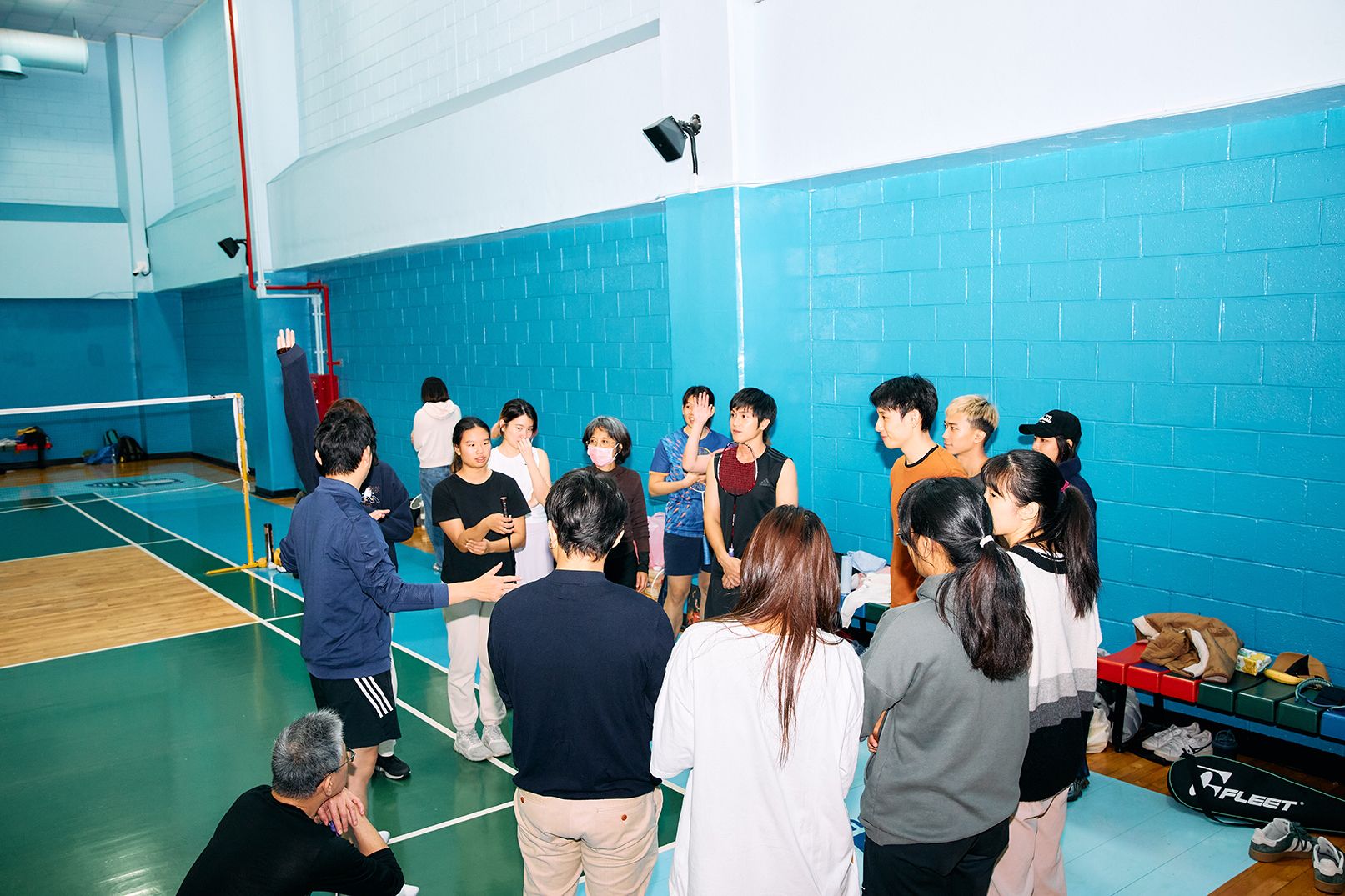 2024年年末的某日下午,台北天氣一如往常的冬季,潮濕又陰冷,但捷運復興崗站附近的羽球場上,卻是充滿著活力十足的熱鬧氣氛,這是動見体劇團(下簡稱動見体)辦給會員的專屬活動「動見体運動會」,除了團長符宏征、聯合藝術總監王靖惇外,也邀來過往作品《戰》系列演員的楊傑宇、廖根甫、劉嘉騏和劉亭妤等人,在場上場下和會員「打成一片」。