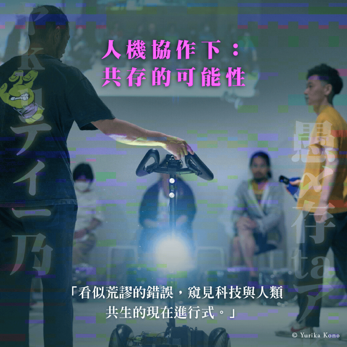 在人工智慧快速進化的時代,我們每天都在與各種AI技術互動:從語音助理、影像辨識,到自動翻譯與推薦演算法,AI正逐步滲透進我們的生活。但當AI被放上舞台、面對活生生、無法預測的身體時,它又能如何「理解」我們呢?演出將邀請觀眾一同觀察,當即興的人體動作遇上機器的語言系統,會激盪出什麼樣荒謬卻深具啟發性的化學反應?AI能夠學習、分析與說話,卻也在面對不可預測的人類身體時暴露出各種理解上的偏差與困境,正是這些不完美的轉譯、不完整的語言,反而讓我們重新思考,人與科技的關係該如何被建立與想像,然而在看似荒謬又深具啟發的錯誤中,又窺見科技與人類共生的現在進行式。