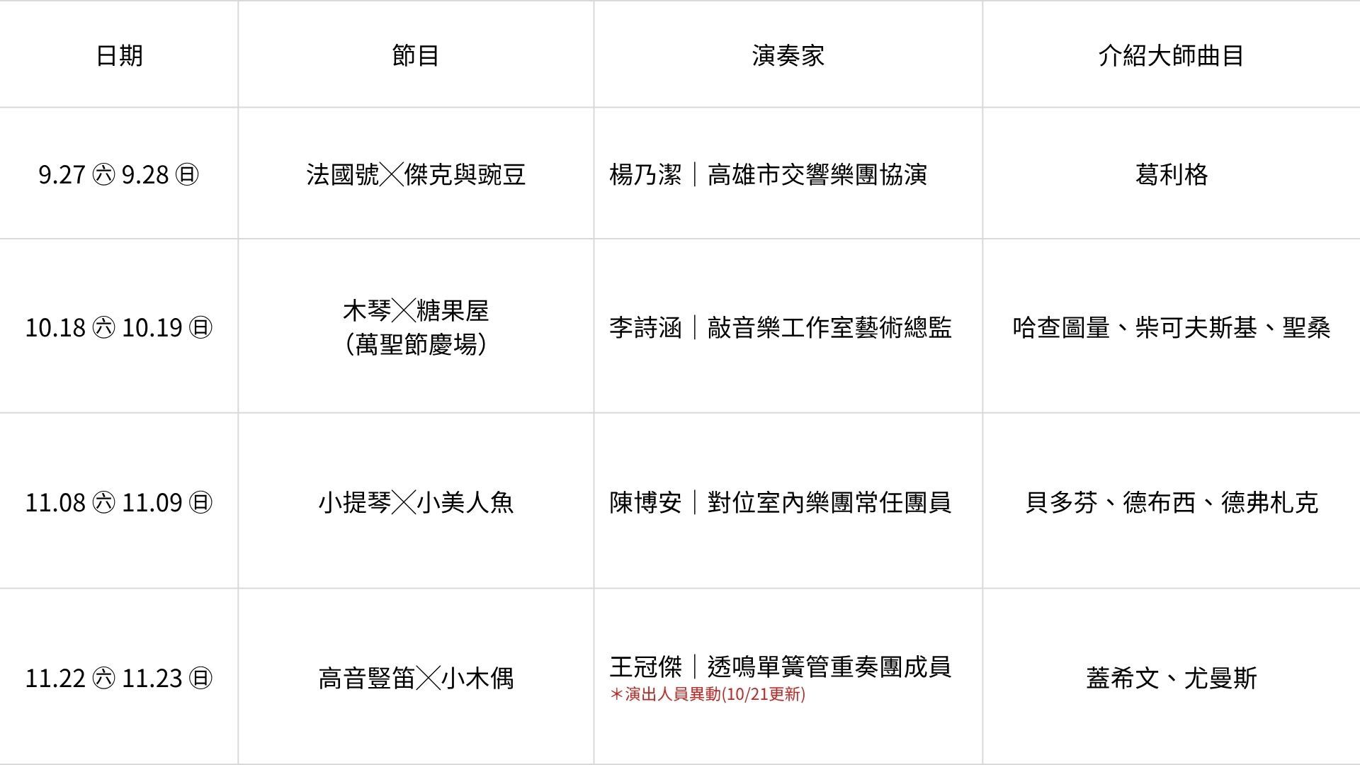 *本節目11/22-11/23【高音豎笛╳小木偶】場次,高音豎笛演奏家異動(10/21更新)