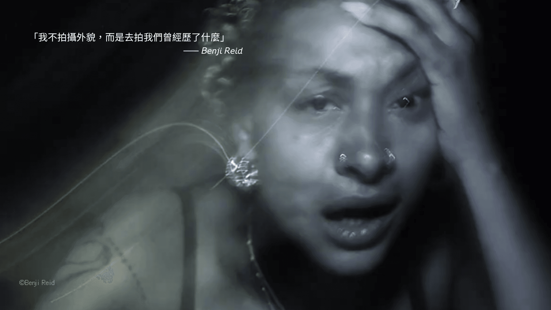《即席寫真》(Find Your Eyes)以「戰爭攝影」(War Photography)為起點,不是對戰場的記錄,而是對藏在日常生活裡無聲的「戰爭」深刻寫照。英國藝術家班吉・瑞德(Benji Reid),將他的鏡頭轉向英國社會的現實面——黑人的社會創傷、毒癮、憂鬱、種族歧視、社會保障體系,這些日常的痛苦與困境,往往被多數人選擇性忽視,甚至視為理所當然,但在班吉・瑞德的攝影棚下,被照亮了。