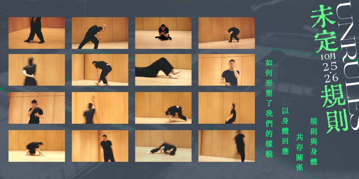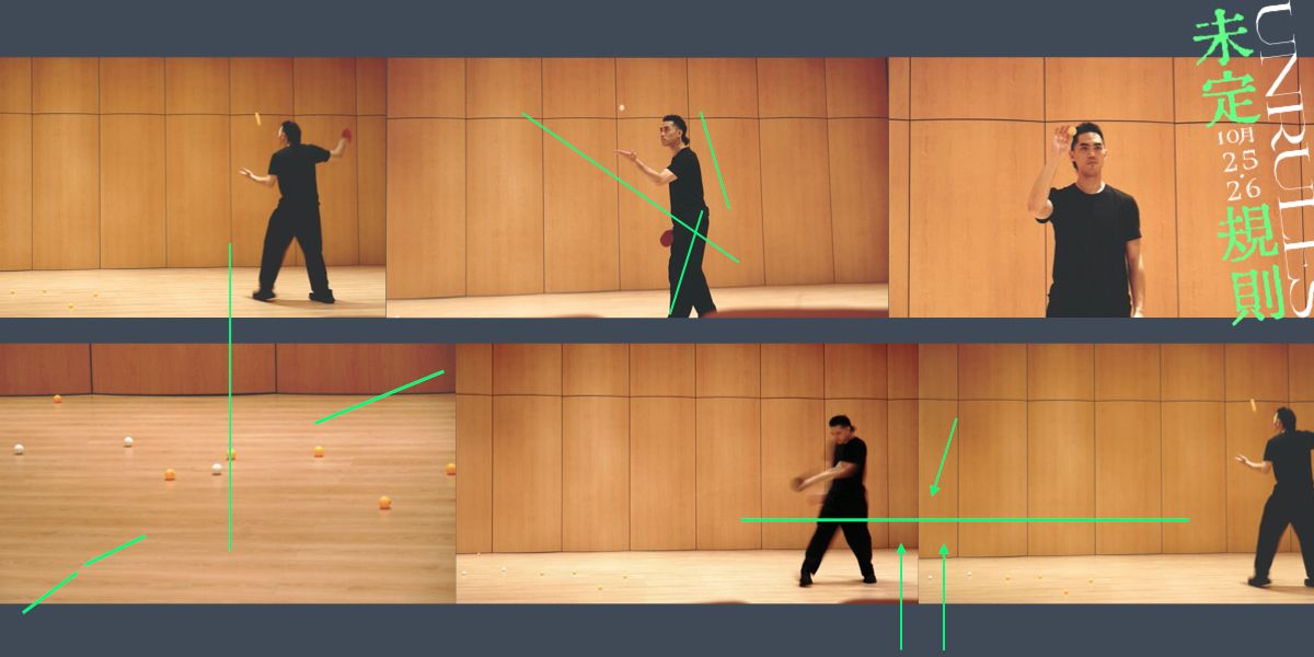 《未定規則》從「規則」與「身體」之間的關係張力出發,表演者在視覺化的線條裝置中,以乒乓球、身體回應指令作為隱喻,