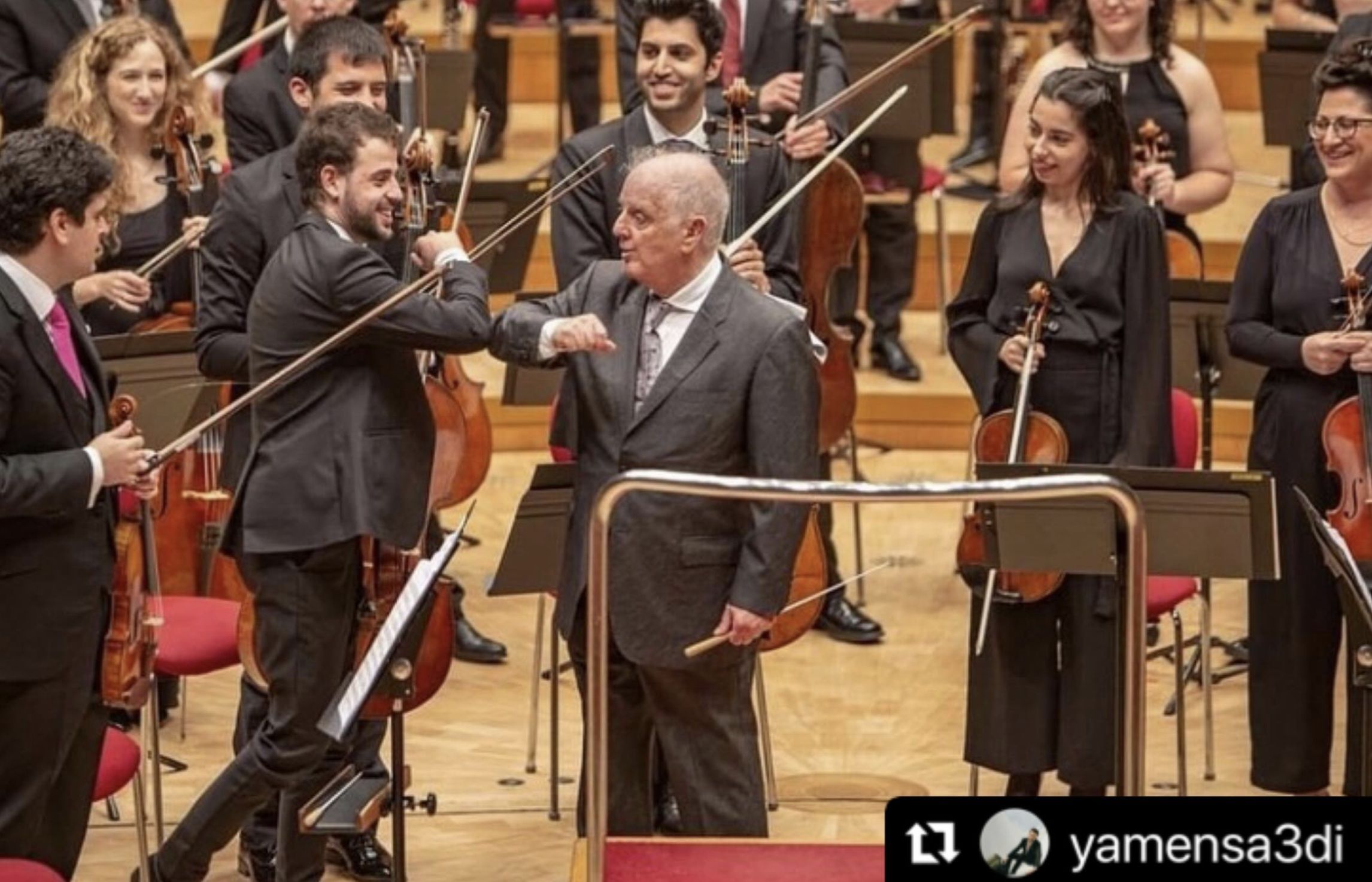 在成為維也納愛樂首席之前,亞門・薩迪(Yamen Saadi)受大師丹尼爾・巴倫波因(Daniel Barenboim)任命,擔任德國柏林西東合集管弦樂團(West-Eastern Divan Orchestra)的首席。 回到他十歲那一年:在耶路撒冷的「兩族音樂會」中,他隨著由以色列與巴勒斯坦年輕音樂家組成的樂團登台演出。演出結束後,這位勇敢的小男孩走向巴倫波因,直接問他:「我可以加入西東合集嗎?」巴倫波因笑著回答:「你還太小了。」當時年僅十歲的亞門・薩迪回應:「如果有幫助的話,我可以假裝自己二十一歲。」