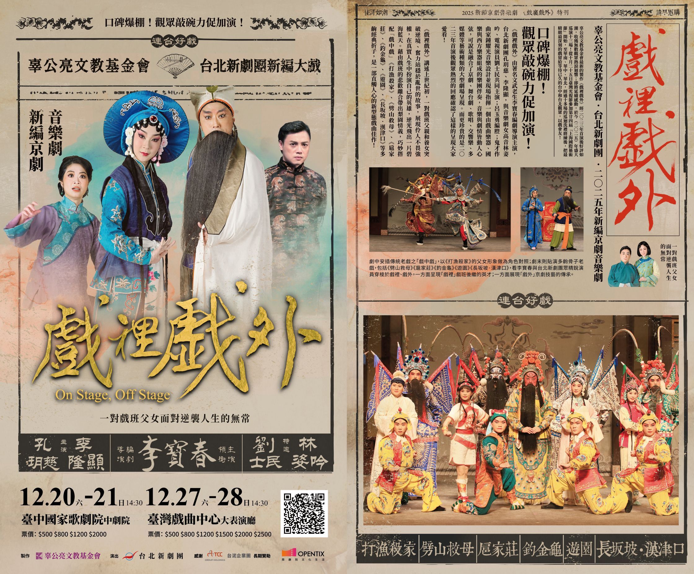 辜公亮文教基金會最新的製作《戲裡戲外》經2023年首演後好評如潮,收獲無數觀眾熱淚迴響;即將延續感動,於今(2025)年盛大巡演13場!從十月二十五日臺灣光復節參加第廿四屆『上海國際藝術節』開始,至華南、華中、華北,經過十多場的巡迴洗禮磨練後,把最精緻最深刻的戲留給等待已久的台中和台北觀眾,以戲會友!