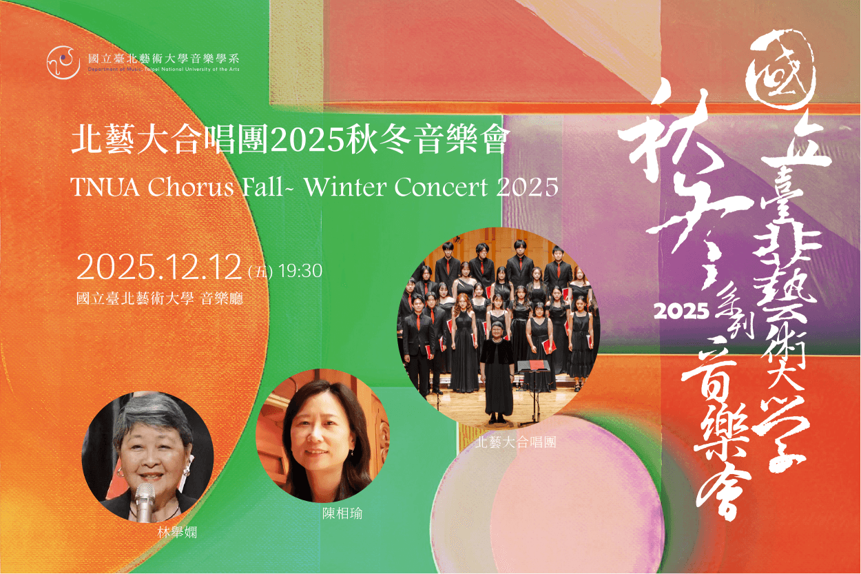 誠摯邀請您蒞臨北藝大音樂廳,以歌聲與和聲的溫度,共度充滿感恩與喜悅的冬夜。