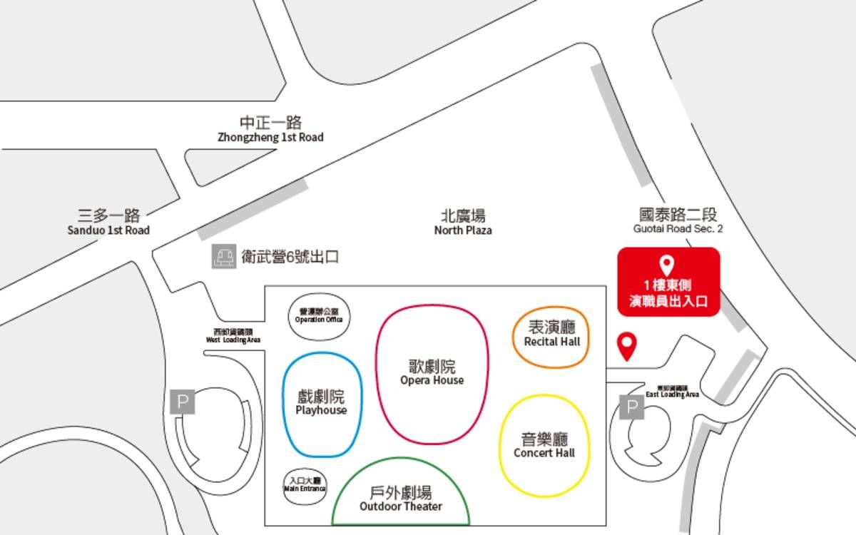 請家長們注意!必須從衛武營1樓東側(國泰路側)的演職人員出入口或B1停車場入口進場,才有辦法抵達演出地點。