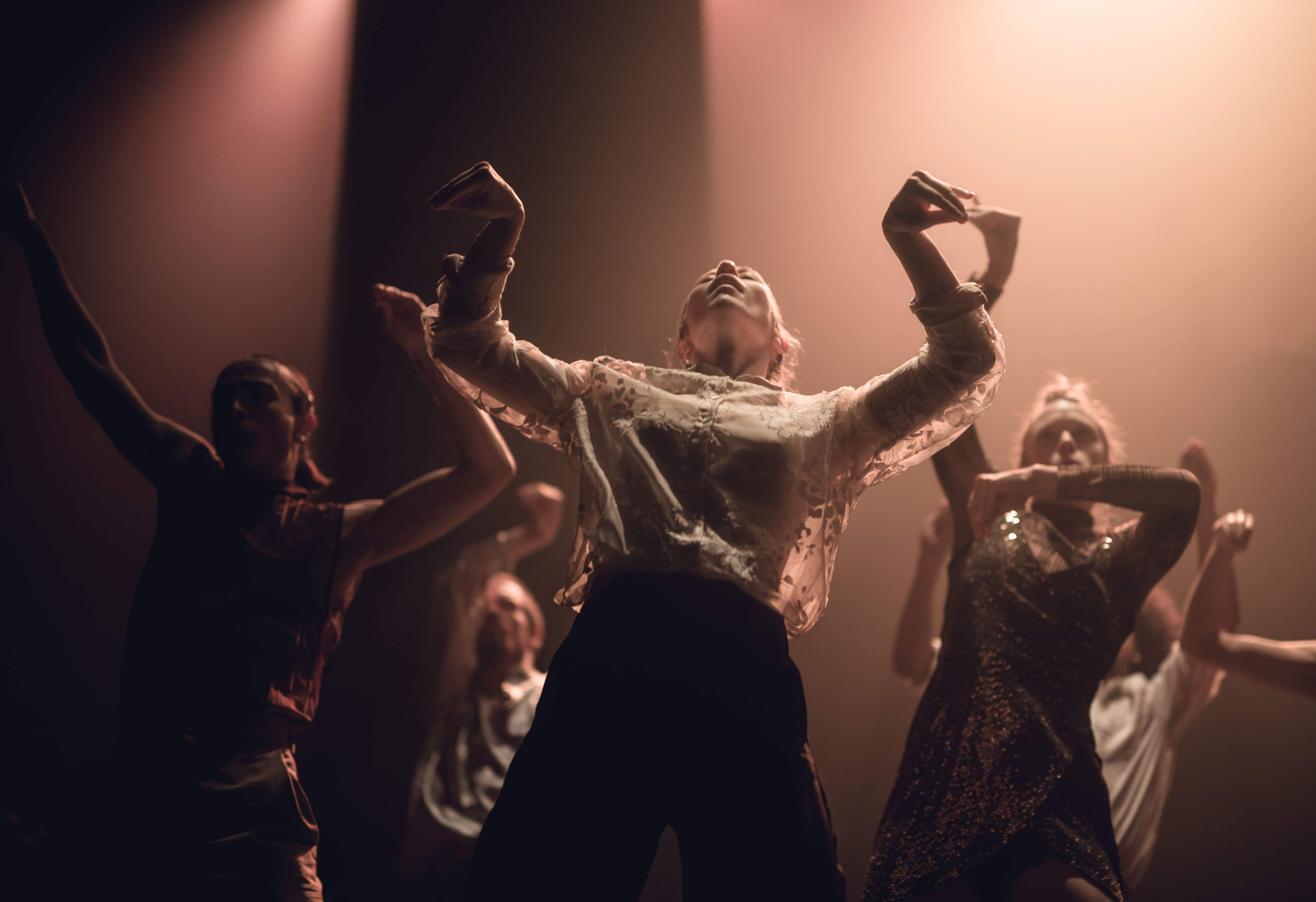 燈光是招魂的幡旗,隨簾幕開闔將舞者的身體推向極限;三人樂隊自角落浮現,奏響勾魂的樂章,時而哀傷搖擺、時而震耳欲聾,將每個人的靈魂拖進夢境深處,隨群舞湧動震盪不息。