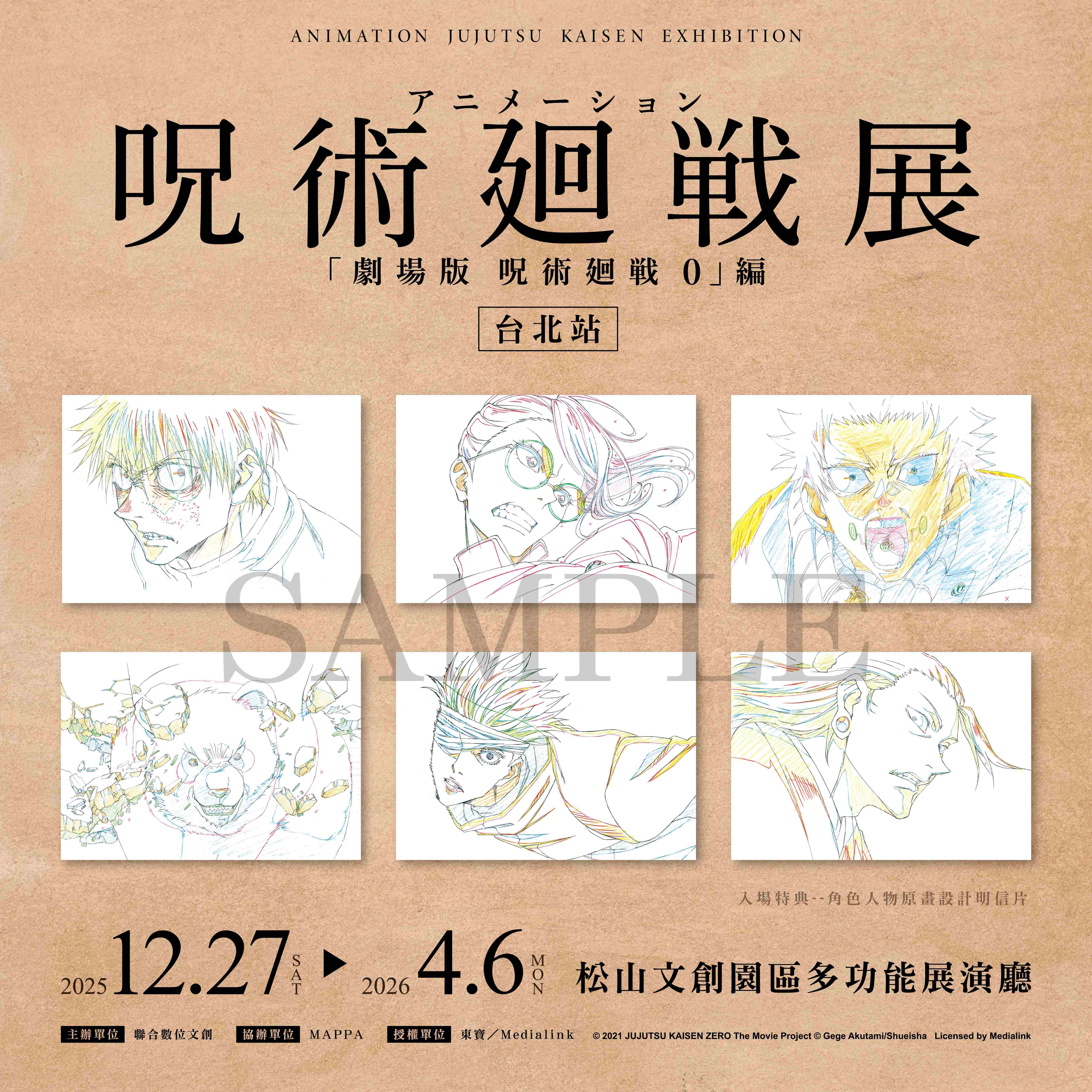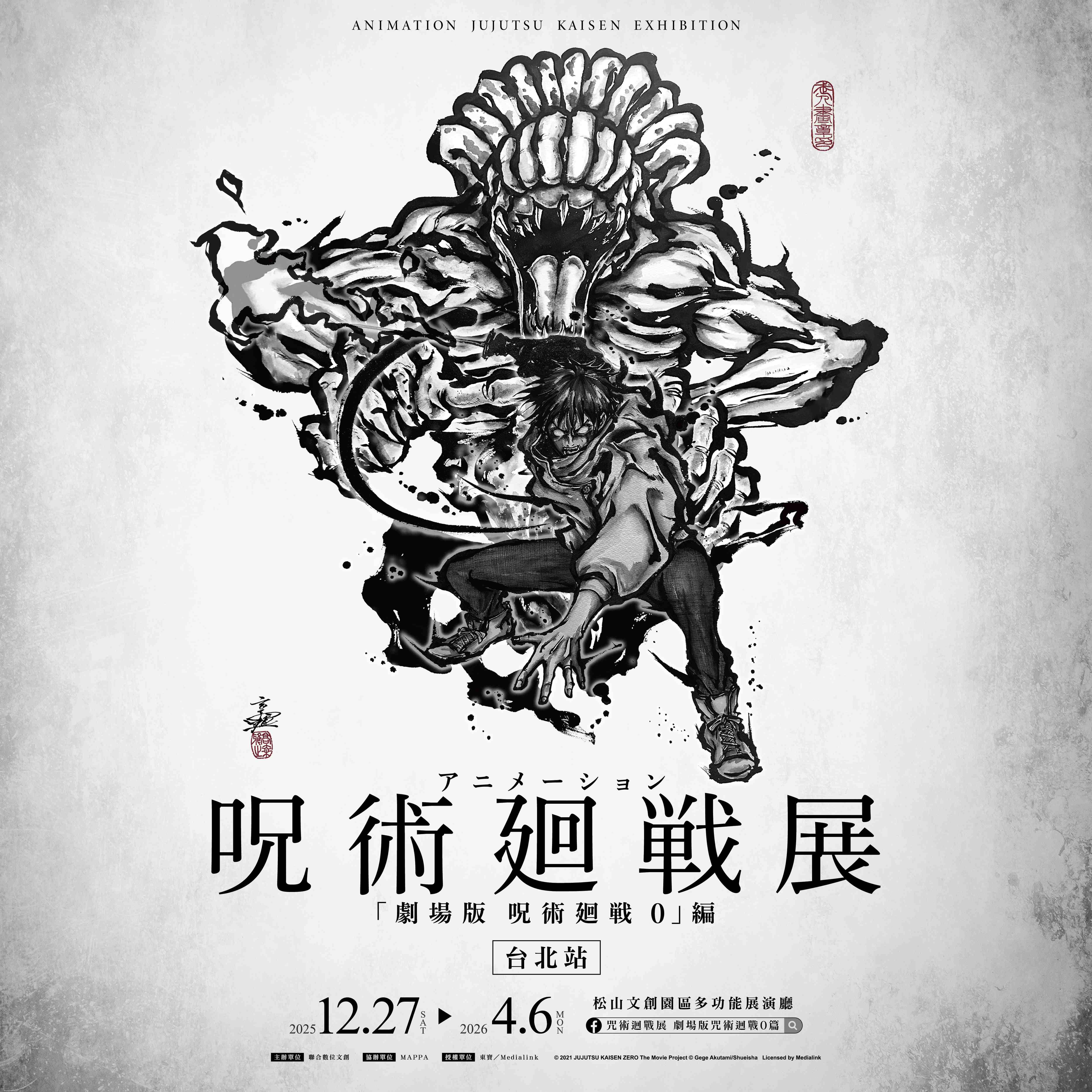 風靡全亞洲的超人氣動漫作品《咒術迴戰》,憑藉其獨特的世界觀和極具特色的人物角色設定,迅速吸引大量粉絲喜愛,繼漫畫熱銷破億、動畫橫掃各大獎項、《劇場版咒術迴戰 0》締造票房佳績後,再度以沉浸式展覽席捲亞洲!由日本官方授權打造的「咒術迴戰展《劇場版咒術 0》篇」,自 2022 年於東京首展起,已在日本與韓國各大城市巡迴,所到之處皆掀起觀展熱潮,吸引大批粉絲朝聖。今年 12 月,這股咒力即將降臨台灣,「咒術迴戰展《劇場版咒術 0》篇」,將在台北松山文創園區多功能展演廳盛大登場,完整重現劇場版的熱血場景與角色魅力。粉絲們將親臨咒力滿載的世界,近距離欣賞劇場版的珍貴幕後創作資料、「最強咒術師」五條悟1:1模型與多款咒具神還原展示,更特別的是,展覽更加碼展出動畫第1季與第2季「懷玉・玉折」篇的精彩內容,同時也邀請到日本知名水墨畫家こうじょう雅之(Kojo_masayuki),以獨樹一幟的筆墨技法重新詮釋角色風貌,帶來與動畫、漫畫截然不同的視覺震撼體驗,粉絲絕不可錯過。