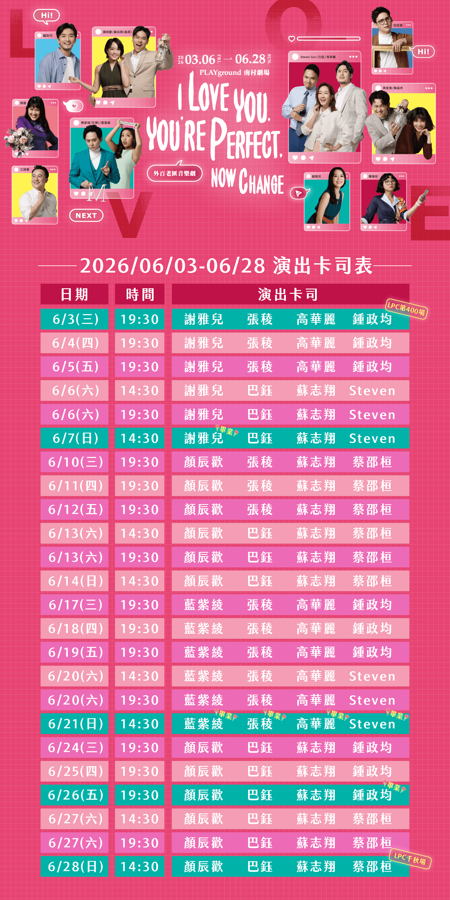 【LPC演出異動公告】(公告日期2026年4月8日)