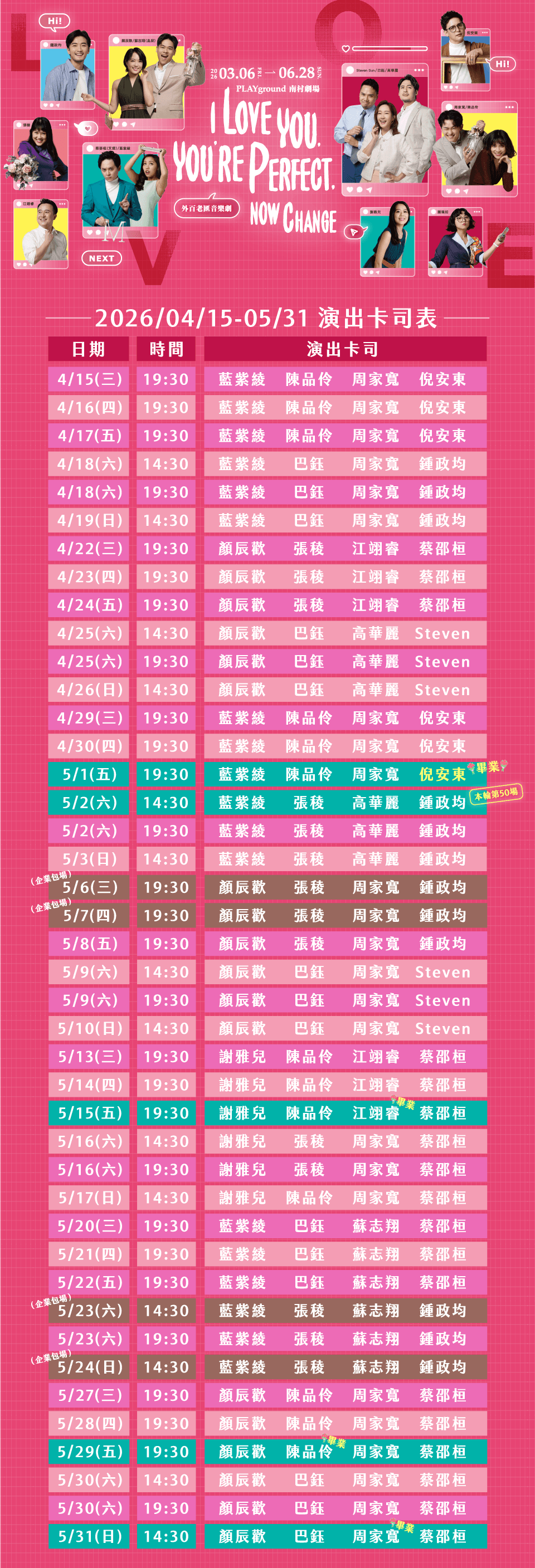 【LPC演出異動公告】(公告日期2026年4月8日)