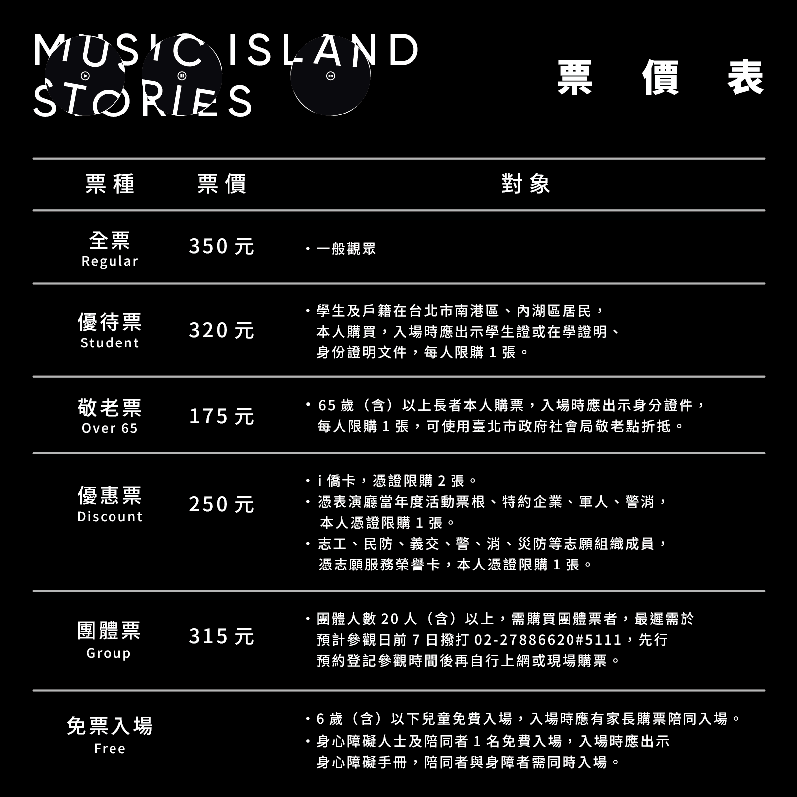 原開館優惠各票價僅使用至2021/12/31止,逾期未使用者,請依規定至臺北流行音樂中心文化館退票或洽協助專線02-27886620#5111。