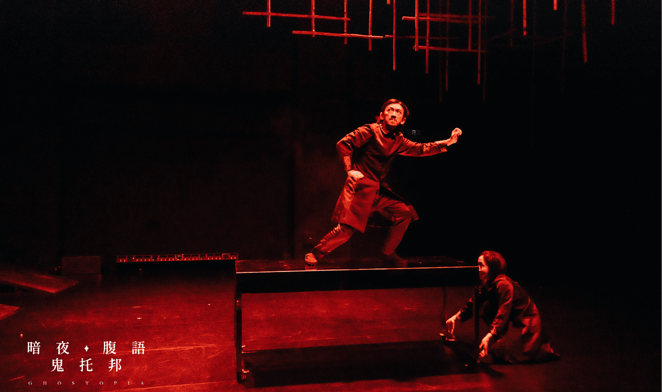 《暗夜.腹語.鬼托邦》三個詞語組成一種寓言式的結構,既是情節的線索,也是一種概念的召喚。整部作品以佛教《大智度論》中「二鬼爭屍」的寓言故事為核心靈感。帶入東南亞驅魔與邪典電影的鬼魅化角色,再以港片中「無厘頭」的語言方式將喜劇元素與嚴肅命題相互融合,套入殖民歷史衍生的時代背景中。在形式上既不流於純實驗,也不依賴傳統敘事,整部作品的結構如同一場「附身」的儀式:開場的瞬間,觀眾就被帶入一個語言層層疊疊、記憶交錯的幻境。