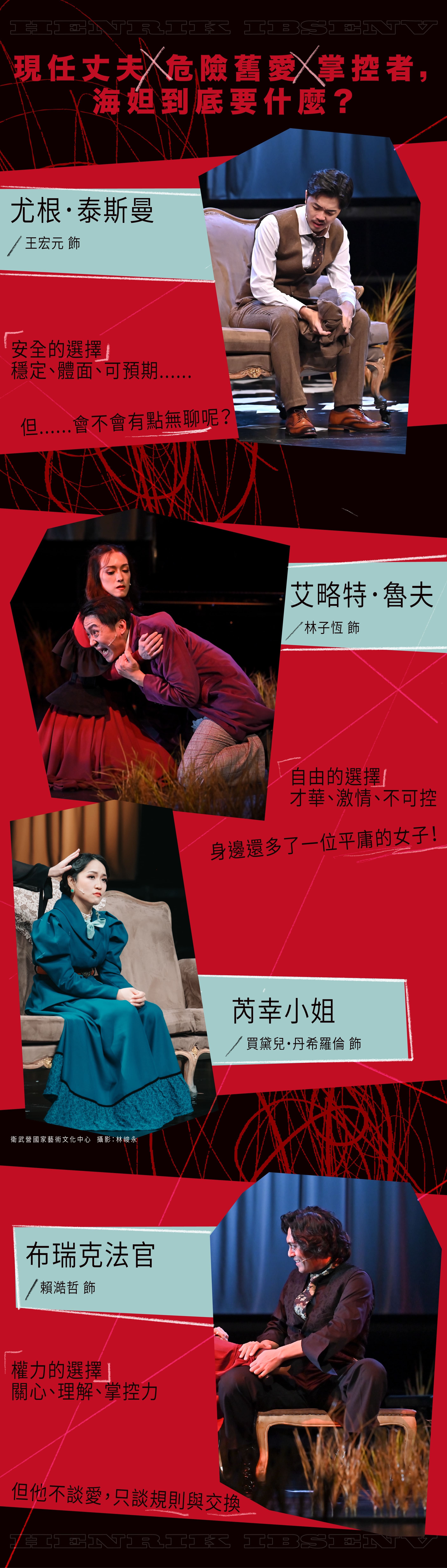 被譽為「現代戲劇之父」的易卜生經典劇作《海妲.蓋柏樂》,自1891年首演以來,始終是世界各地最受歡迎的劇目之一,也是易卜生最具挑戰性的作品。在易卜生的筆下,這並非單純的婚姻悲劇,而是對當代社會價值的深刻映照。劇中每個角色都帶著理想、慾望與脆弱,彼此糾纏,既獨立鮮明,又讓人產生共鳴。海妲的掙扎與反抗,最終導向不可挽回的結局,也成就了這齣震撼世人的現代悲劇。