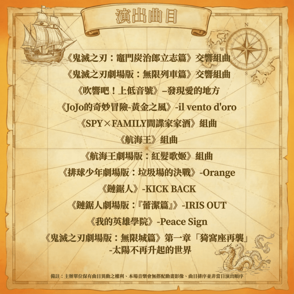 當旋律響起,就是我們在偉大航道上相遇的暗號。整座音樂廳都將化為動漫迷專屬的狂歡祭典,等待所有熱血靈魂入座!