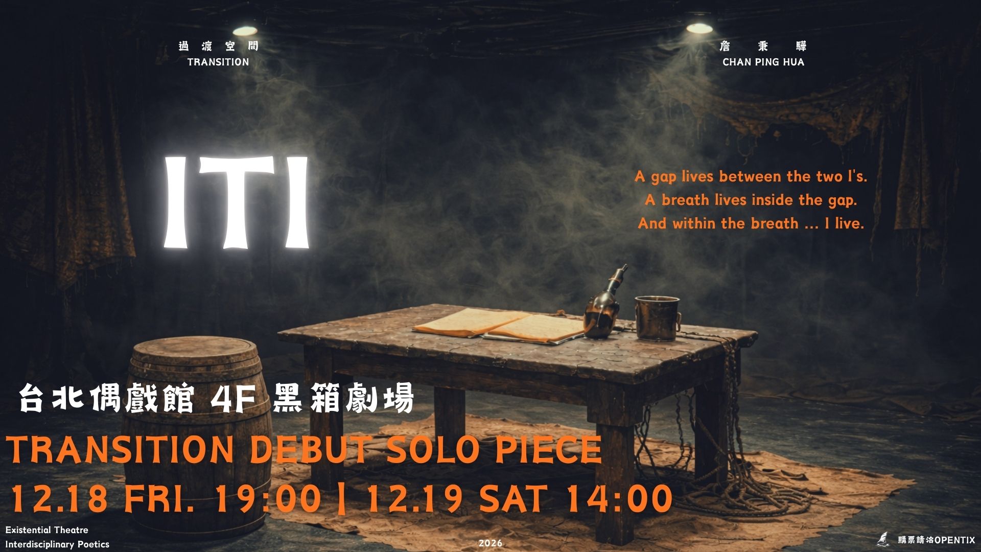 《TrAnsITIon》是一齣以「過渡狀態」為核心的當代劇場作品,透過語言、身體、聲音與光影,描繪一位創作者停留在兩個自我之間的心理航行。作品不以「抵達」或「完成」為目標,而是將舞台轉化為一艘尚未靠岸的船,在不確定、停滯、焦慮與自我對話中,邀請觀眾一同停留、感受、呼吸。