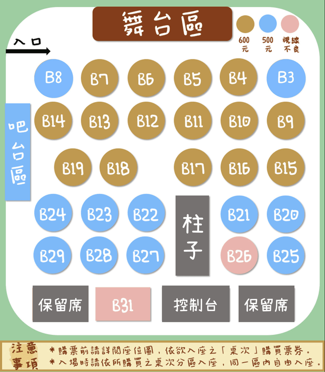 #台北場需依購買之「桌次」分區入座,同一區內自由入座,購票前請詳閱座位圖。