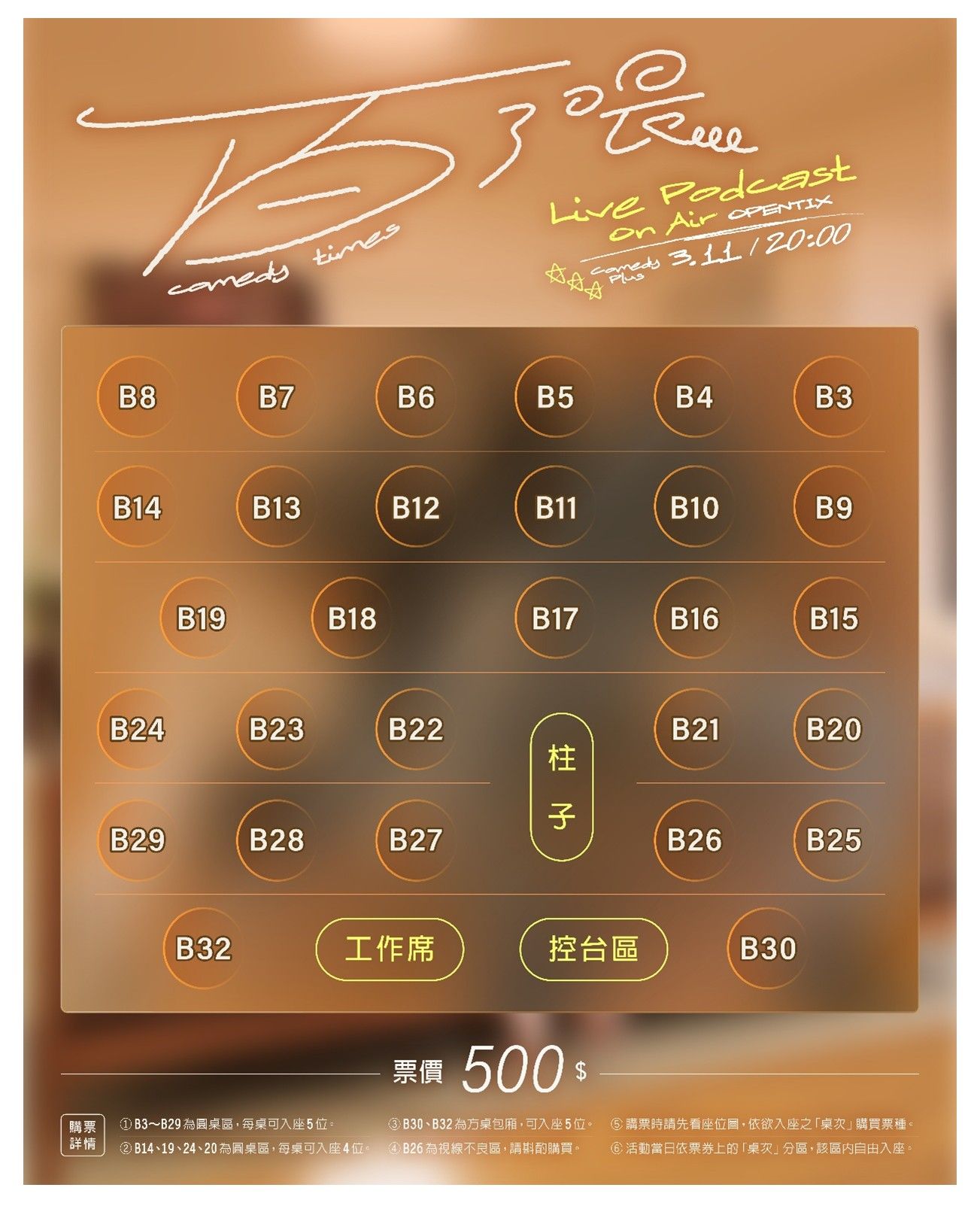 票價500元(含一瓶葡萄王 PowerBOMB 爆能能量飲料)