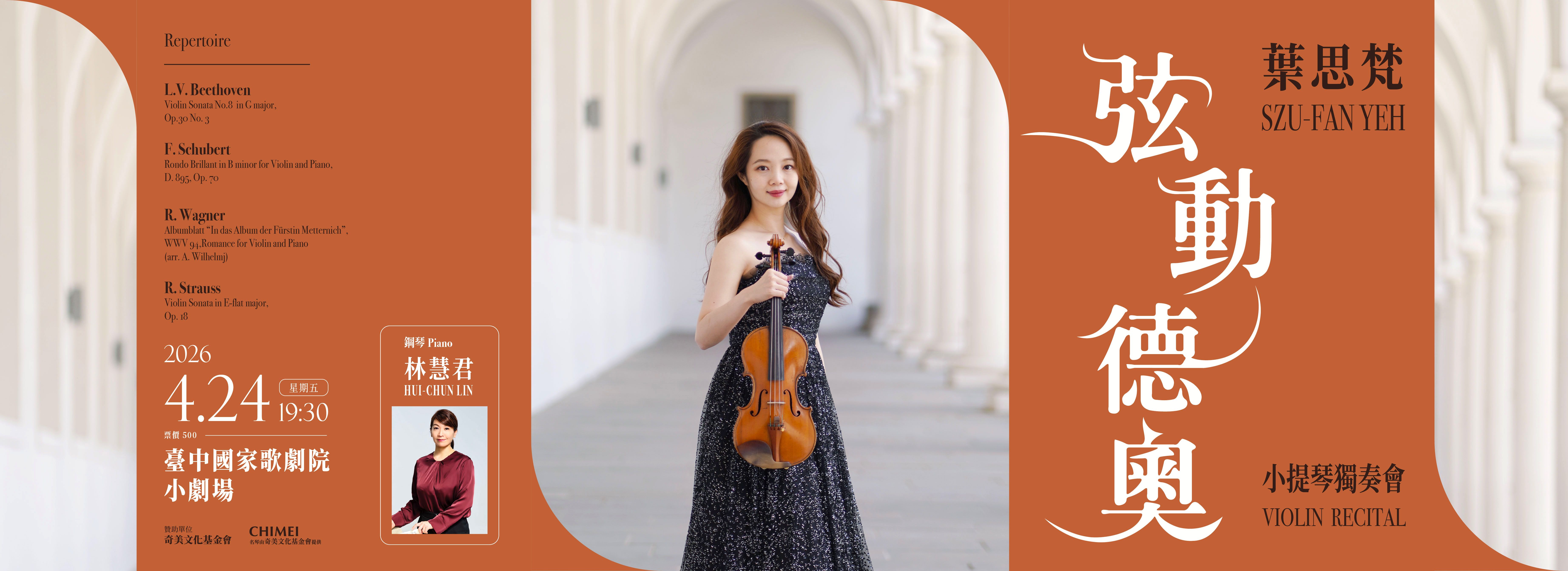 本場音樂會橫跨古典與浪漫意境,呈現傳統德奧的音樂語彙。貝多芬《第八號G大調小提琴奏鳴曲》兼具嚴謹結構與情感張力,體現其創作風格逐漸成熟的特質。舒伯特《b小調華麗輪旋曲》融合抒情旋律與高難度技巧,展現炫技與歌唱性的張力對比。理查・華格納〈羅曼史〉原為鋼琴作品《Albumblatt》,經小提琴家 August Wilhelmj 改編後更顯細膩詩意。理查・史特勞斯《降E大調小提琴奏鳴曲》與交響詩《唐璜》創作時期相近,氣勢恢宏且風格絢麗。