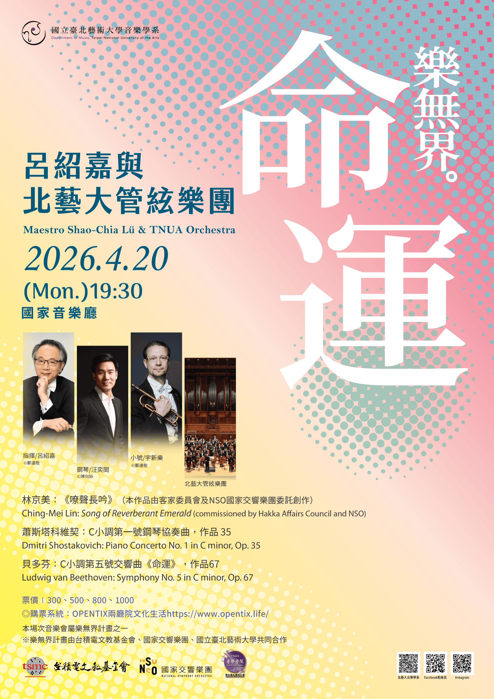 下半場安排貝多芬《C小調第五號交響曲》,以嚴謹結構與強烈精神性,象徵人類面對命運的奮鬥歷程,亦呼應《樂無界》計畫所強調的毅力、責任與藝術使命。