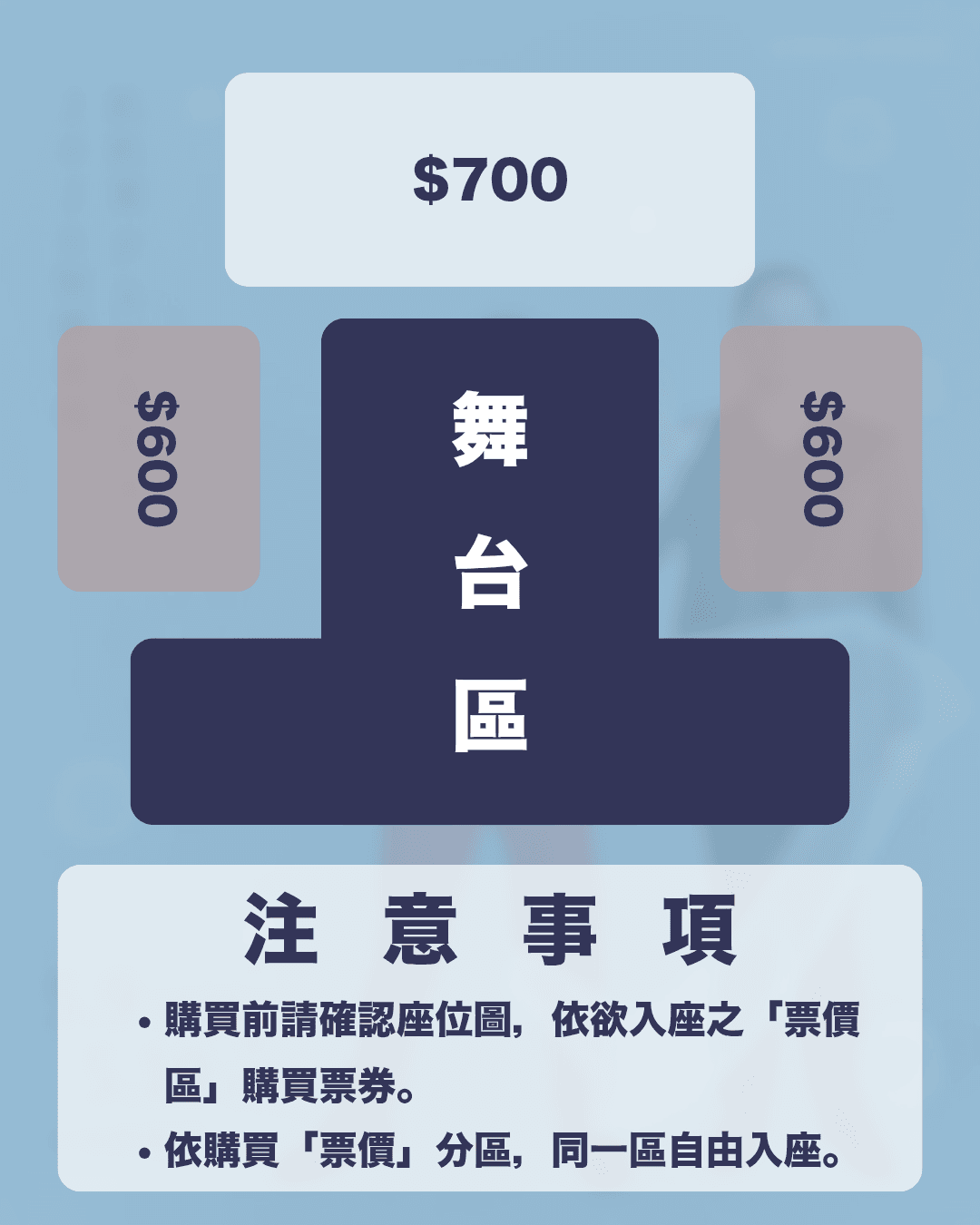 演出票價:新台幣600/700元 (依票區分價,請參考座位圖)