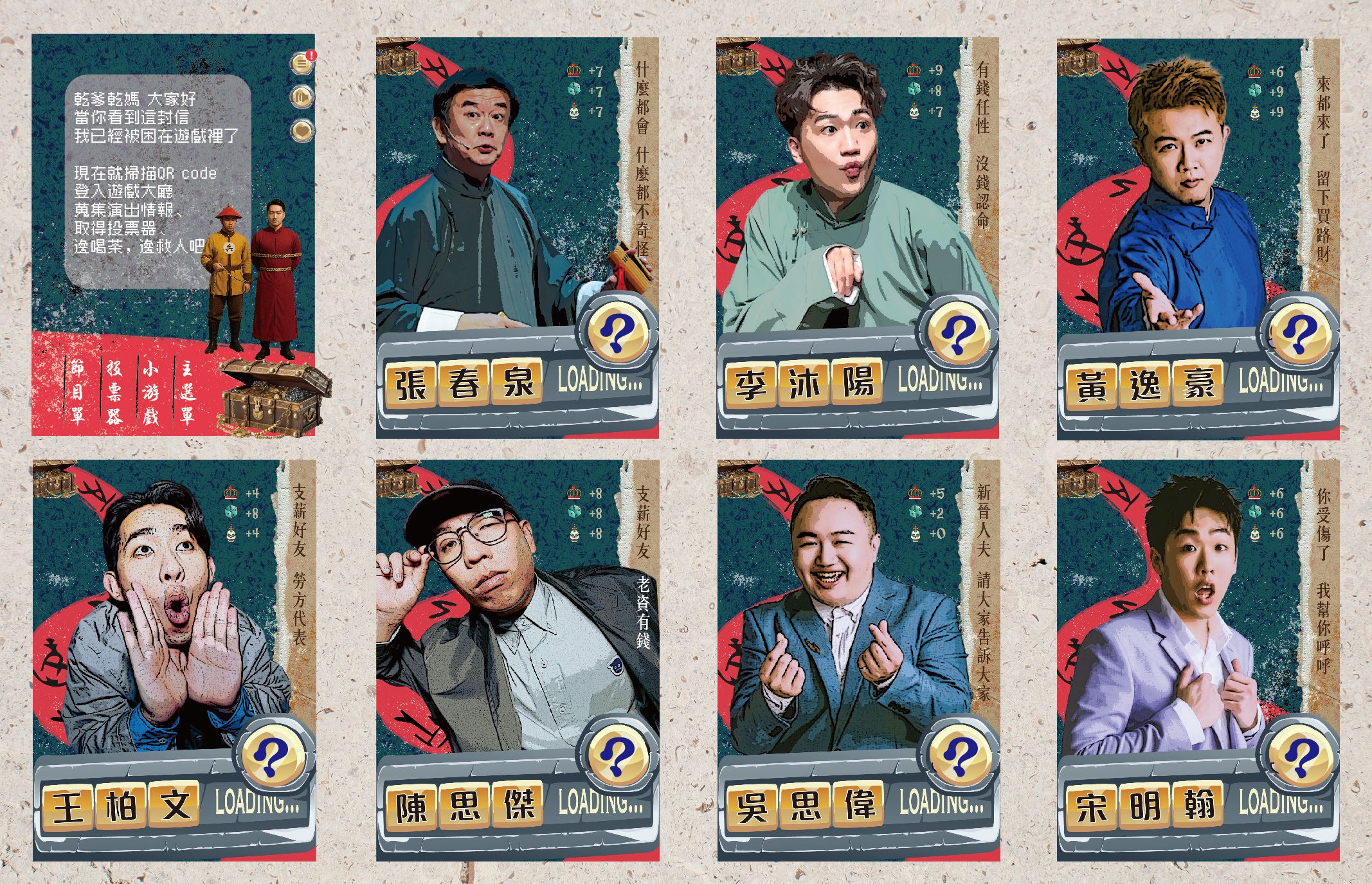 選取你的遊戲人物角色,準備登入【聲聲漫】情境劇場,蒐集你的SSR喜劇人物圖鑑,成為一級喜劇玩咖!