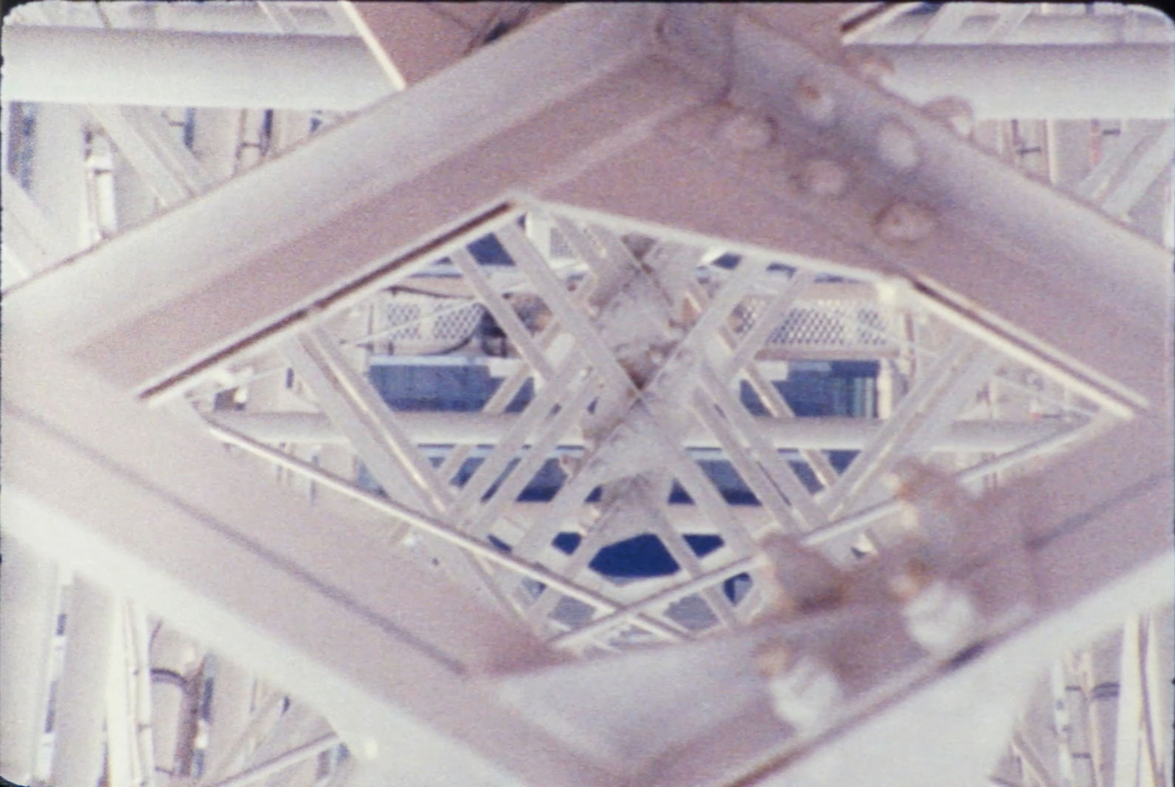 Shot with a telephoto lens from inside a cabin of Cosmo Clock 21, a Ferris wheel in Yokohama, Amusement Ride presents a distorted view of its mechanical structure. Focusing on intermittent vertical movement, the image echoes the motion of film passing through the gate of a projector or camera.