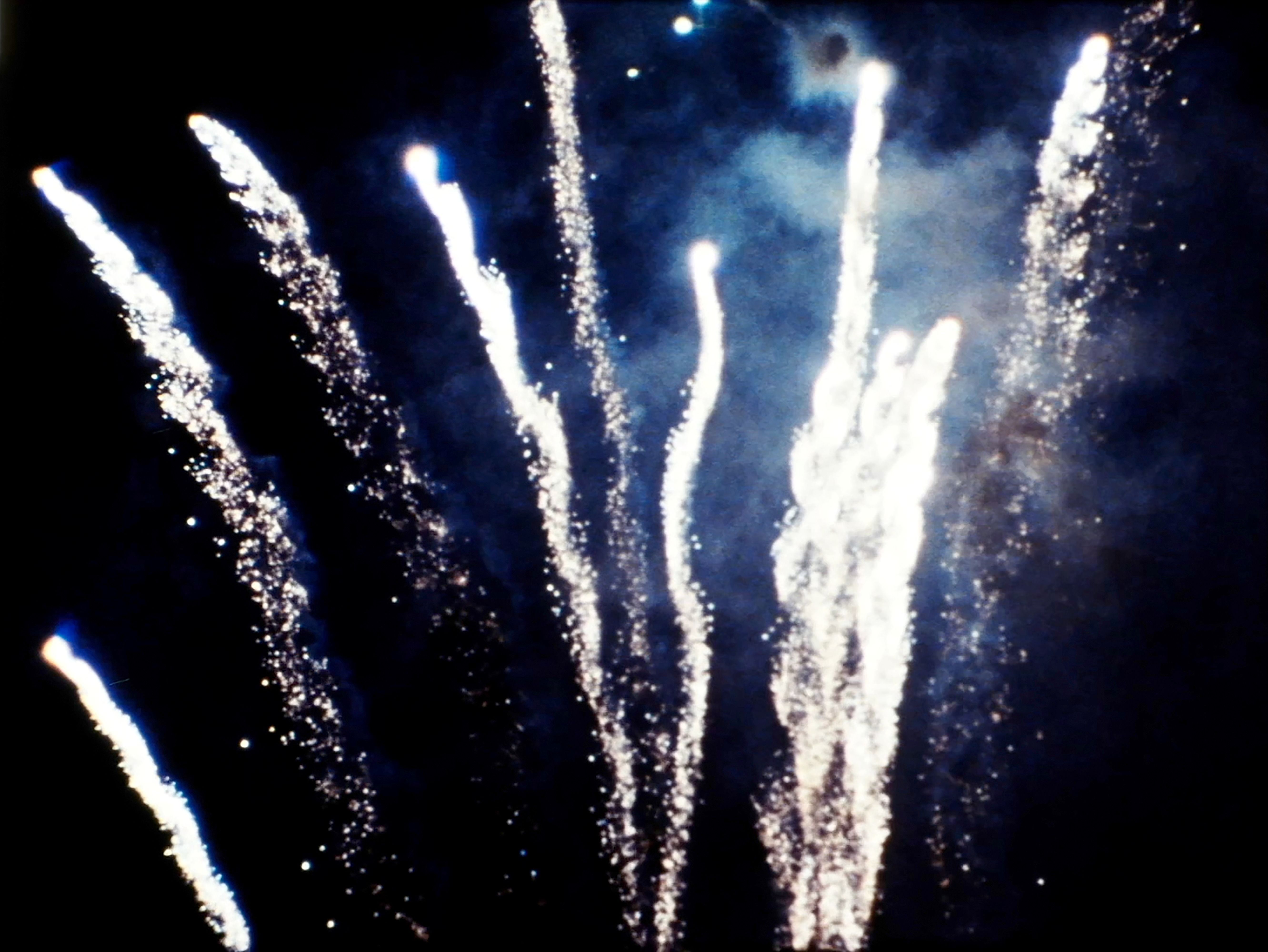 Fireworks at a summer festival in Japan were filmed with a Super 16 format camera in order to record images directly onto the optical soundtrack area of the filmstrip. In 16mm projection, the optical soundtrack is read 26 frames ahead of the projected image. Working with this mechanical offset, Nishikawa cut and spliced footage from two rolls of film into 26-frame segments and alternated between rolls. Through this structure, sound and image are repeatedly displaced from one another, while a distinct rhythm emerges from their continual misalignment.