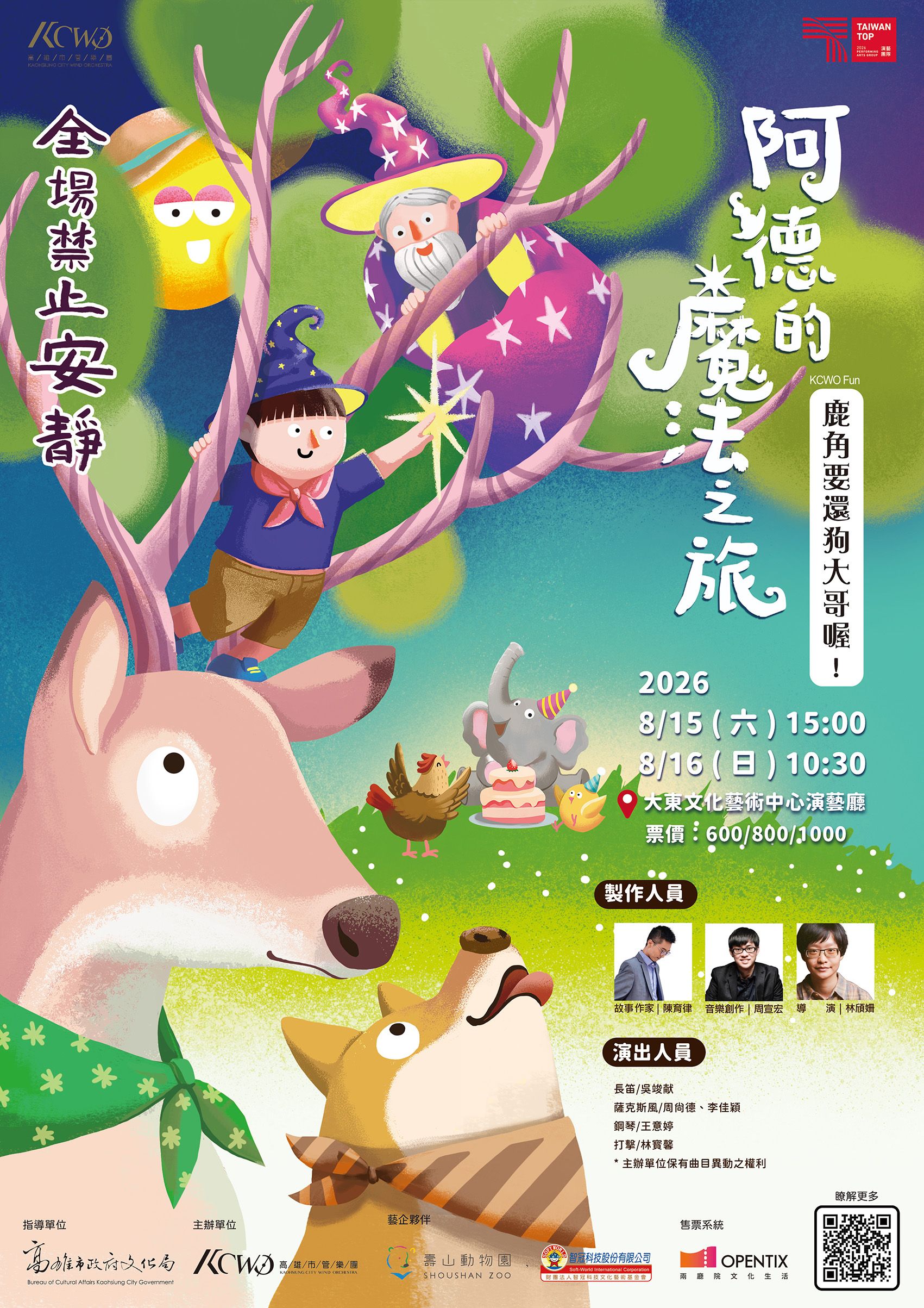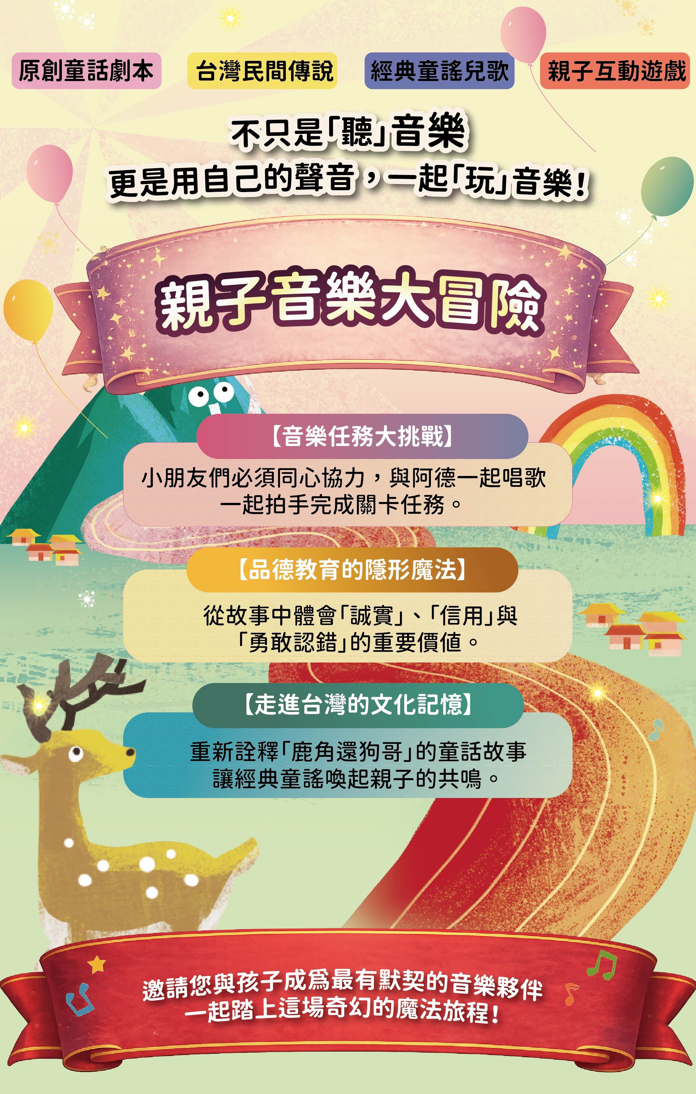 現場的小朋友,需要發揮最強大的聲音能量大聲歌唱、跟著節奏一起拍手,尋找神秘的「三個字咒語」。爸爸媽媽快帶著小朋友那顆好奇愛冒險的心,跟著阿德一起完成這場充滿奇幻的魔法之旅!