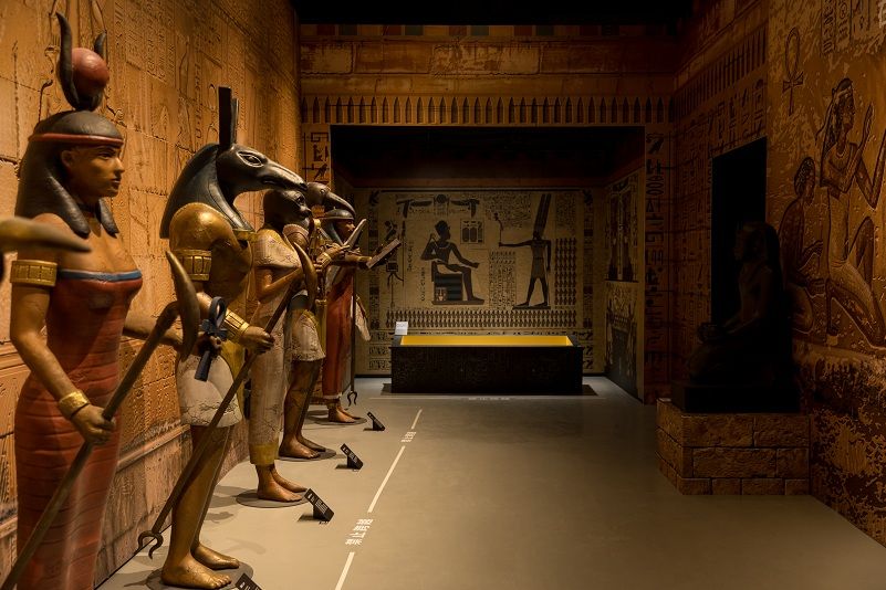 展區亮點:立體金字塔投影、巨型人面獅身像、陵寢造景