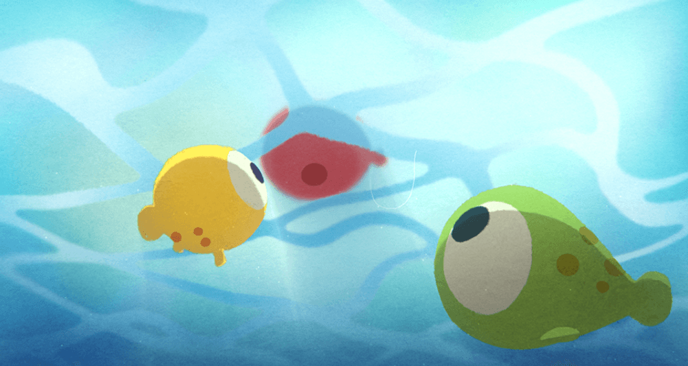 在大海中央,一群魚發現一隻紅色的小魚漂浮在水面上,牠似乎快不能呼吸了。魚群努力想把牠救回水裡,卻沒發現那其實只是一顆氣球。