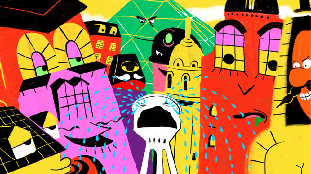 Every morning, Theo the Water Tower cries and disturbs the village’s peace , disturbing